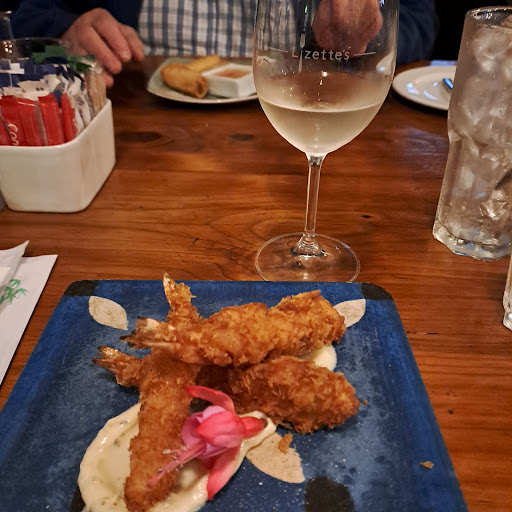 Read moreOur first visit to Lizette's was enjoyable. The interior is very attractive, the staff are friendly and attentive and the menu, Asian inspired, was interesting. I enjoyed the panko crumbed prawn starter with nori mayo. The nori mayo was very savoury and it was a relief to dip a prawn in the dipping sauce that came with the 3 pork spring rolls, which were crispy and tasty. My 'seafood' laksa was heavy with coconut milk and a short on spice/flavour. There were 5 mussels, some small tender hake pieces and two small prawn dumplings, I would have preferred the prawns on their own for a 'seafood' hit rather than the dumplings but perhaps if the base had been more spicy/complex this would not have mattered. My husband really enjoyed his stir fried beef luc luc but would ask for it with rice rather than the standard French fries. The cappuccino was excellent. We will return and taste some...