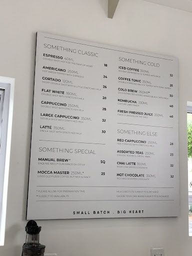 Coffees range from R23-36 for espresso-based drinks, and R36-50 for cold and manual offerings.