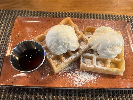 The manager came over and asked if I had enjoyed my meal. He mentioned that the waiter had informed him I was dissatisfied with the waffles. I explained the coldness and old taste, and the manager apologized, revealing that the waffles are actually pre-made, frozen, and simply reheated when ordered, which directly contradicted what Pedzi had told me. This explanation confirmed why the waffles were cold, hard, and tasted stale.