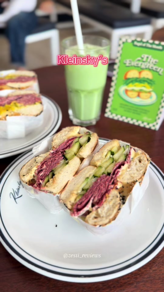 Ā Ā Ā Read moreWent to Kleinsky's today with two friends from Johannesburg. They felt like having bagels (the huge bagel decor adorning the entrance did its job well) and while I did warn to them the bagels are a bit underwhelming from previous dining experience, I do think the plated breakfasts and coffee are decent. The premonition was pretty spot-on in the end -- the Latke Benedict (with salmon) was delicious, the deep-fried potatoes terraformed into a beautiful little flat earth housing a bulbous poached egg and tenderly folded salmon that burst and spread all over my plate in a sticky pool of happiness. The Pastrami bagel, on the other hand, was tough and not pieced together well, a sad little bread circle.