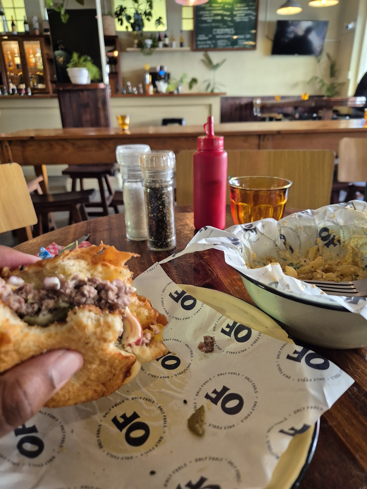 Visited the new revamp spot last night. Now known as âOnly Foolsâ. It was a decent experience. The restaurant is very small but I really like that. The menu is the same with only 3 burger options and a few sides available. The food was tasty but I felt overpriced. The burgers arenât big and sides are not included with a burger. Although a small spot, only having 1 chef and 1 other staff member who was doing front of house, waitressing and bartending meant that there was a long wait in between things.