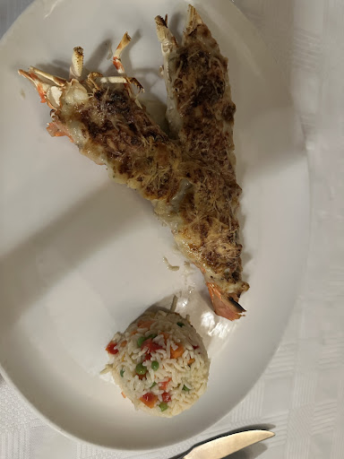 I opted for one of Baia's Specialties, Shellfish Platter for One. The platter which consists of 3 Queen Prawns, 3 Langistuines, 1 Baby lobster with two sides, Savoury rice and Chips together with a lemon and garlic sauce to compliment the Shellfish. Most pleasingly displayed on a clean oval white serving dish.