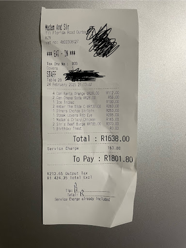 I really feel sorry for Mr & Mrs Mthembu, because they’ve built something truly special, and their brand deserves to be represented with class, respect, and hospitality at all levels. It’s unfortunate that one individual, through lack of training or awareness, can undo all the hard work and heart they’ve put into Madam and Sir.