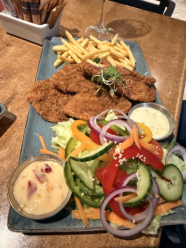 The chicken schnitzel was paper thinâmoist enough, but it felt like the batter outweighed the actual chicken. A cheese sauce wasnât offered, and honestly, that couldâve made a big difference in rounding out the dish.