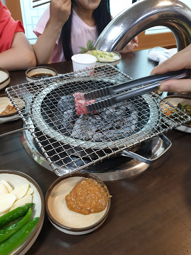 160그램 1인분인데 3인분이 최소주문이란다. 160그램 1인분이 대부분이 뼈무게를 차지하는 160그램이다. 사실상 고기 양은 1인분에 80그램은 되는지 의문이다. 3인분의 소갈비를 시켜 먹는데 평소 많이 먹지도 않는 커플인데도 빈 불판만 긁고 있을 정도로 고기 양이 빈약하다. 뼈를 손님이 직접 추리게 해서 끓여낸 갈비조림도 맛이 그저 그렇다. 배추를 잔뜩 넣고 끓여온 소고기된장국은 그런대로 맛이 괜찮다. 양과는 별개로 고기의 맛은 최상급이다. 다만 이정도 가격을 지불하면 수도권에서 동질의 고기를 서버가 친절하게 구워주는 것과는 상대적으로 손님이 전적으로 고기를 구워야 하며 서빙의 친절도 또한 최악이다. 다시 안동을 찾는다 해도 두번다시 가지...