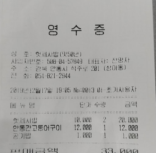 계산서를 끊으니 33,000원이 나왔다. 헛제사밥 2인분에 공기밥 1그릇. 고등어 구이 1마리가 저녁밥상인데 굉장히 비싸다는 생각만 들었다.