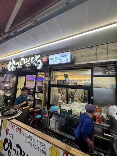 안동 구시장 안쪽에 찜닭거리가 있다. 50여 미터 양쪽을 안동찜닭 가게들이 가득 차있는데 그 중에 가장 평점이 좋은 가게가 안동영가찜닭 이였다.