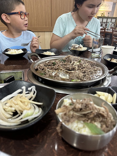 They offer forks and barley tea (as well as plain water) Gave us tips on how to eat the bulgogi best