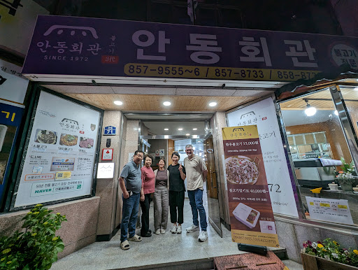 We found this gem not far from we were staying near the Andong Public Ungbu Library (near the Andong Cultural Centre). We wanted a quiet peaceful relaxing meal and chose Andong Hall after checking out the busier food alley nearby. We had the most delicious beef bulgogi which the ownerโs daughter showed us how to cook on the BBQ grill. The meal was accompanied with many tasty vegetable side dishes known as Banchan. These were some of the best side dishes I have had since my stay in South Korea. We were given a complimentary traditional Korean rice dessert drink called Sikhye. It was very refreshing. We washed our meal down with barley tea and Cass beer. Using a translator, we asked where where we can buy Cass (Beer) glasses. To our delight, we were given 2 glasses to take home to Australia. The restaurant is a family run restaurant which was started by the grandmother 52 years ago. Andong Hoegwan (Andong Hall in English) is certainly worth a visit for the excellent bulgogi and warm and...