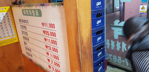 제가 밥 먹은집 중에 최악입니다. 김치찌개 2인분 시켰는데, 양도 많지 않은데다가 육수를 사용하지 않았는지 김치가 너무 시게 느껴지고 임팩트가 없는게 그냥 신맛만 나요. 거기에다 오늘이 고기 손질하는날인지 찌개용 전지를 대량으로 손질하는데 비위생적으로 고기를 박스에 그냥 담는데 아니구나 생각이 확 밀려오더라구요. 그리고 반찬도 완전 아니더라구요. 오뎅, 고추장아찌, 신김치, 고사리무침, 오징어젓갈이 나왔는데 그나마 오징어젓갈만 먹을만 했어요. 그건 아마도 완제품을 구매한거라 맛이 있지 않았나 생각을 해 봅니다. 다음에 다시는 갈 일...