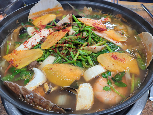 해물탕 같기도 매운탕 같기도한 국물이 상당히 매력적이라 칼국수면이 자꾸 들어간다. 게다가 막걸리도...