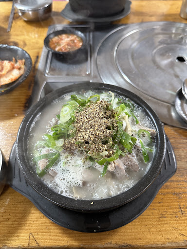 전체적으로 순대국, 뼈해장국 모두 맛있다고들 하나 순대국이 좀더 맛있다는 말에 귀가 얇은 저는 순대국 특을 주문했습니다. 뚝배기가 가득찰 정도로 내용물이 상당히 많았습니다. 내용물은 순대 몇알, 내장과 머릿고기로 이뤄져있었습니다. 국물은 들깨가루가 미리 들어가있는 흰국물인데 상당히 고소했습니다. 국물의 고소함이 일품이라고 할 수 있을 정도로 제가 먹어본 순대국들 중 최정상급에 달할 정도로 상당히 맛있었습니다. 하지만 저는 빨간국물파이기 때문에 다대기를 넣었습니다. 고기는 내장류들이 들어있기 때문에 돼지꼬린내가 약간 나지만 그때문에 맛이 크게 반감되는 수준은 아니었습니다. 김치와 깍두기가 나오는데 김치는 겉절이에 가까운 맛있는 김치였고, 깍두기는 아주 약간 익은 단맛의 그것이었습니다. 국물의 감칠맛을 위해 순대국에 깍두기 국물을 넣는 분들은 깍두기 국물이 달기 때문에 넣더라도 아주 약간만 넣거나 아예 안 넣고 매운 새우젓으로...