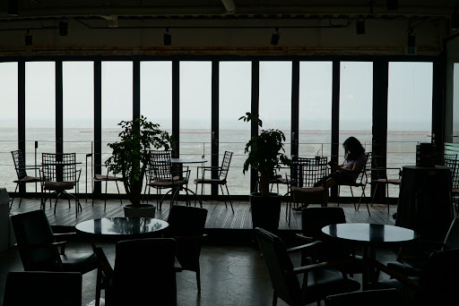 ๋ด๋ถ๋ ๋์์ ์ธ ๋ธ๋ ์ค ํ์ดํธ ์์์ผ๋ก ๋์ด ์๊ณ , ์ ๋ฉด์ ๋ชจ๋ ์ฐฝ์ผ๋ก ๋์ด์์ด ์ํด๋ฐ๋ค์ ์๋ฆ๋ค์ด ๋ ธ์์ ๋ณผ ์ ์์ผ๋ฉฐ, 2์ธต ๋ฐ์ฝ๋์ ๋ฌธ์ ์ด๊ณ ๋๊ฐ๋ฉด ๋ฐ๋ท๋ฐ๋์ ๋ง๊ณ ๋นํํ๋ ๊ฐ๋งค๊ธฐ๋ ๊ฐ๊น์ด ๋ณผ ์ ์์ด์. ์ฃผ๋ฌธ์ 1์ธต์์ ํ๊ณ 1์ธต๊ณผ 2์ธต ํ ์ด๋ธ์์ ์ปคํผ๋ฅผ ์ฆ๊ธฐ๋ ๊ตฌ์กฐ์ ๋๋ค.