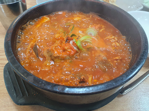 What they do, they do REAL well! Killer fish soup. I got the "everything" bowl (not the dish for the table, the single bowl) and it was outstanding! If you're put off by egg sacs and stuff like that, stick to the normal bowl, not the "everything". The 반찬, although only 3-4 things, is self-serve/refill amd the prices are really reasonable! Also, although I didn't have it, the table next to ours made sure (2 different men at the table) to tell the server that theybordered the pork cutlet for their kids, but when theybl (adults) tried it, they found it super-nice, too! It passes the test for Korean quality- been around for a long time (LONG time), and always busy, even though it's a little...