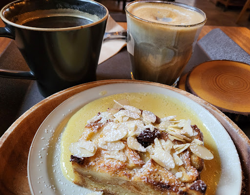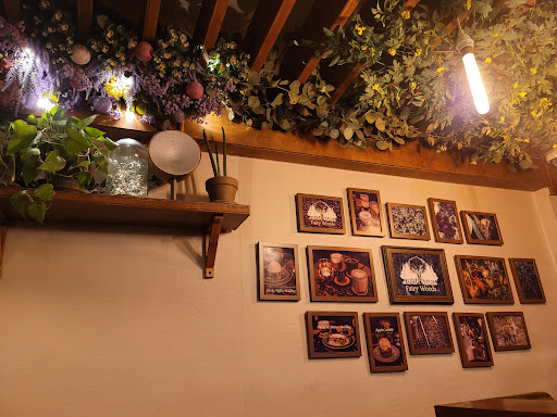 Read more숲속의 한 공간에 온듯한 인테리어가 이색적인 곳입니다. 우드한 분위기가 좋네요. 내부에 전구와 꽃들이 많아서 이쁘네요. 가격도 괜춘합니다. 아메리카노 3천5백원 , 라떼 4천원입니다. 브레드앤버터푸딩은 따뜻하게 나오는데 시나몬롤과같은 느낌의 맛인데 엄청 촉촉하네요. 커스터드크같은 노란색 크림이 부어져나오는데 부드럽네요. 아몬드위에 슈가파우더가 뿌려져서 나옵니다. 음악도 좋고 사장님도 친절하셔서...