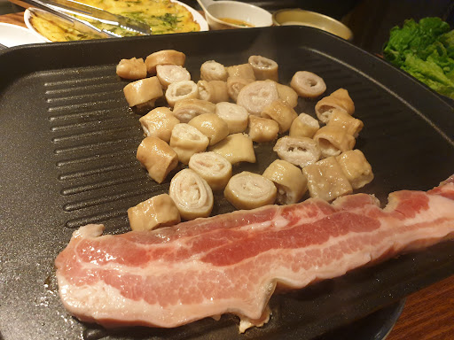This restaurant sells pork. There are famous Korean foods, samgyeopsal and makchang. But even more special, it is to grill and eat the host greens and kimchi that come out together. If you want to try, reservation is necessary. Because there are so...