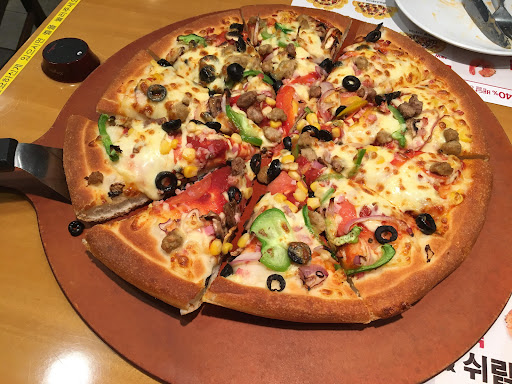 Korean pizza.... different than American pizza. Good toppings available but hard to...