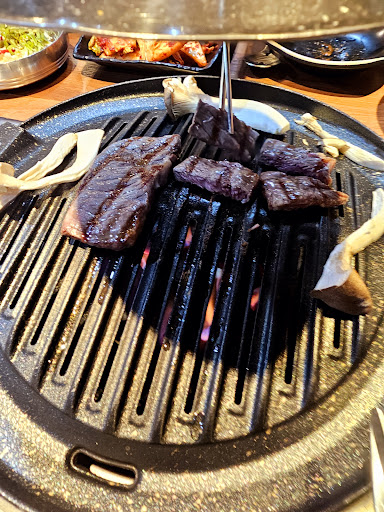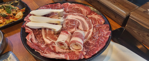 Hands down the best BBQ spot in Asan. Right across from the 4 story Daiso. The food was delicious and came with a multitude of different side dishes. The prices were fair and our whole meal (2 adults and 2 children) was 39,000 won. The best part is on the 3rd floor there is a huge play area for the kids. It has arcade games, the jungle gym, and a little projector playing animated films. 10/10...