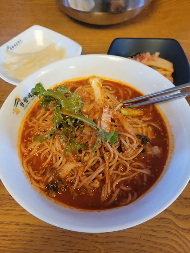 Read more아산 여행중에 지나가던길에 차들이 많이 주차되어있어 들렀습니다. 오후 2시정도에 들러서 그런지 주차는 그럭저럭 편하게 했습니다. 가격은 잔치국수 비빔국수 각 6,000원 어린이국수 3,000 만두 3,000 으로 비교적 저렴한 편이고 잔치나 비빔국수는 곱배기 할경우 1,000 추가됩니다. 메뉴는 딱 4가지만 있습니다. 카운터에서 주문 하고 결재 먼저하고 자리잡아야 하며, 메인음식 외에 모든건 셀프입니다. 한쪽에 있는 온육수가 있는데 맛이 좋습니다. 매콤 하면서 오뎅국물같기도 하고 하여간 제입맛에는 딱맞았습니다. 전반적으로 맛도 괜찮고 비빔 같은 경우는 은은히 매운맛인데 계속 댕겨요..ㅎㅎ 보통국수보다 조금...