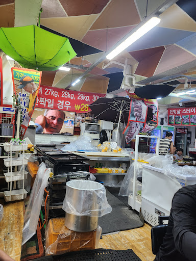 Read more사장님이 도축을 직접 해서 좋은 고기를 저렴한 가격에 먹을수 있습니다. 기본반찬은 셀프인데 반찬가게에 온건가 라는 생각이 들 정도로 다양하게 준비되어있었고 간이랑 천엽도 서비스로 나온건데 엄청 푸짐하게 주셨어요 ㅋㅋ 그리고 사장님께서 갈비를 통으로 가져오셔서 직접 손질해주시는데 그것도 재밌는 볼거리였던것 같습니다. 손질해주시면서 사시미로 먹어보라고 조금 잘라주신것도 별미였어요. 사장님이 추전하신대로 주문했는데 갈비살이랑 살치살 까지 먹을수 있어서 너무 좋았어요! 살치살은 고소하고 부드럽고 갈비는 쫄깃하고 정말 맛있게 잘 먹엇습니다. 온천하러 가서 별 기대없이 들어간 식당이였는데 최고의 소고기를 먹은거 같아요사장님이 고기에대해서 자부심을 가지고 장사하는 모습도 보기 ㅈㅎ 저녁시간에는 사람이 많아서 대기해야될수도 있으니까 조금...
