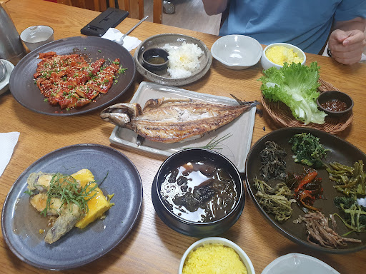 Read moreWe were the last patron as they closes 310pm for last order for break before dinner service starts, we had the whole restaurant to ourselves haha. They speak little to no English but it's pretty easy as they serve set meals only, KRW30k per person. U can add on other dishes if u want but we didn't as we are full from the set meals itself. The deodeok is really yummy! And the side dishes, herbs veggies all looks simple but have distinctive taste, we love it. The tempura toufu and eggplant in sweet sour sauce is so nice, thin crisp fluffy layer. Well worth of a...