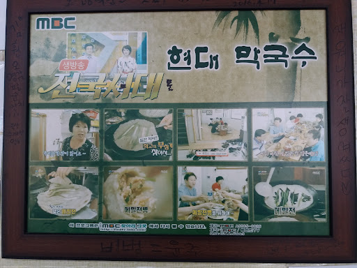주문진 여행하다 최종 목적지 막국수 유명한 고장에 도착 했습니다 식당이 원채 많아서 고민에 고민을 모두가 한결 같이 원조라니 믿음이 가지를 않아서요 그래서 이곳저것 한시간 가까이 탐구에 탐구 고민하던터 노인정에 가서 정중히 할아버님께 여쭈어 보았는데요 할어버님께서 첫마디가 시장 근처 현대 막국수로 찾아 가라고 하시길래 두말없이 곧장 찾아 갔습니다 도착한 식당 분위기는 사방팔방 벽면에 연애인들과 유명인사들의 싸인이 도배가 되어 있었습니다 주문하고 10여분이 지나서 주인 되시는 사모님께서 저희쪽으로 오셔서 환한 얼굴로 미소를 지으며 인사를 해 주셨습니다 그후 저희도 반갑게 인사를 나누니 사모님께서 인심도 후하시게 먼곳에서 찾아 왔다고 하시면서 가격이 7.000원 짜리이나 되는 메밀전을 아낌없이 내어 주셨습니다 어찌나 인심이 후하시던지 사모님 후한 인심에 진심으로 감사 드립니다 이곳저곳 자세히 보니 TV에 여러번 나오신 공인이시네요 만나뵙게 되어 영광 입니다 사모님 첫번째 만남이 기분이 좋았습니다 두번째로 음식맛은 물어 볼것도 없겠지요 정말 맛있었습니다 지금껏 먹어본 메밀국수가 최고의 맛 이었습니다 사모님의 이러한 친절함과 넘치는 후한 미덕 감칠맛 나는 음식맛 메밀맛 대한민국 전국에 여기저기에 알리고 싶은 마음 뿐 입니다 친절한 사모님 다시한번 진심으로 고개숙여 감사드립니다 입맛이 엄청 까다로운 미싯가가 여러분들께 강력히 추천 드립니다 음식맛 절대 후회 없습니다 비빔보다는...