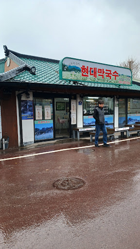 Read more현대막국수(강원특별자치도 평창군 봉평면 창동리 384-8)는 허생원이 당나귀를 타고 떠돌던 봉평장터 초입에 위치하고 있습니다. 이효석선생님이 살아서 현대막국수의 맛을 보셨더라면 무릎을 탁 치시면서 그래! 바로 이 맛이야!를 외치셨을 것이 분명한 평창 봉평을 대표하는 메밀 막국수 집으로 정평이 나 있습니다. 이를 반증하는 증거가 현대 막국수 실내 벽면을 가득 메우고 있습니다. 조선 팔도에서 몰려들어 이 집에서 메밀 메뉴를 맛 본 식객들의 찬사와 추억이 빼곡하게 장식된 벽면이 벽화처럼 느껴집니다. 왔노라!먹었노라! 현대막국수!부터 우리나라 최고의 메밀 막국수 영원하라까지 참 많은 사람들의 사랑을 받고 있는 집이라는 것이 실감납니다. 오랫만에 찾은 현대막국수는 외형은 그대로 옛날 집이지만 내부는 신발을 벗고 방에 들어가 먹던 불편한 좌식 테이블의 불편함을 해소하여 편안하게 의자에 앉아 식사를 하도록 리모델링하여 더욱 좋아졌습니다.메인 메뉴의 맛은 말할 것도 없고 물대신 주전자에 담겨 나오는 메밀차의 구수한 맛은 생각만 해도 군침이 도는 현대막국수만의 화룡점점이라는 생각이 듭니다. 메밀국수를 비롯하여 메밀을 원료로 한 각종 상품을 현대막국수에서 저렴한 가격에 직접 구입할 수도 있습니다. 비가 세차게 내리던 봄 날 점심에 허생원 막걸리를 곁들여 먹었던 현대막국수 비빔막국수의 미각이 강인한 기억으로 또 다시 자리잡게 되었습니다. 우리나라 최고의 막국수 집으로...