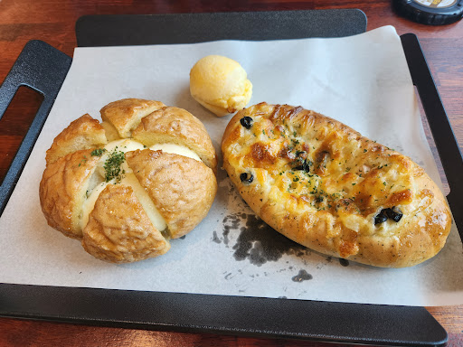 보령시 쪽으로는 가본 적이 없어서 무창포해변으로 가기로 했는데 아침을 먹었기에 간단하게 커피 한잔 하면서 디저트 먹을 수 있는 곳을 찾다가 미리 찾아 놓은 무창포빵명장으로 가기로 함. 빵명장 프랜차이즈의 무창포지점인 것으로 보입니다. 베스트 판매 5 품목은 버터소금빵, 육쪽마늘빵, 빨미카레, 어니언베이글, 담백몽블랑 등인데 시그니처 메뉴인 버터소금빵과 어니언베이글과 따뜻한 아메리카노도 하나 추가해서 주문했더니 총 1.5만원. 독특하니 맛도 좋고 양도 많은 편이라서 베이글은 조금 남겨놨다가 오후에 간식으로 먹었습니다. 다양한 빵 종류가 있어서 좋았고 고르는 재미가 있습니다. 잘 못 고르시면 베스트 상품이나 종업원에게 물어보시면 됩니다. 평일에는 사람이 많지 않아 2층 매장은 열지 않는다고 합니다. 앞에 주차장도 7대 정도 세울 수 있고 주변 도로에도 세울 수 있을 듯 한데 주말에는 사람이 많아서 좀 붐빌 수도 있을 것 같으니 유의하세요. 로컬맛집으로 생각되는 좋은 베이커리였습니다. 다음에...
