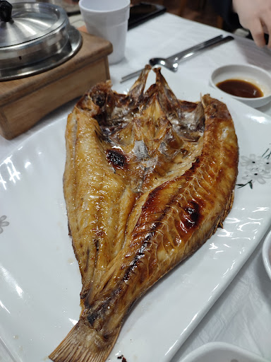 나이드신 주민분들이 많이 오셔서, 안심하고 집밥처럼 식사했습니다. 기본 반찬 5가지 깔끔. 묵은 것도 아니고, 안짜고 새 것이고 좋았어요. 압력밥솥에 개인별 식사, 바지락탕. 장어초무침. 크고 맛깔난 우럭구이. 소불고기 탕. 매운탕. 맛과 충분한 양다 좋았어요. 남자 4명이 먹기에 좋았음. 반주로 소주6병 맥주 6병 맛있게 드실 수 있습니다.