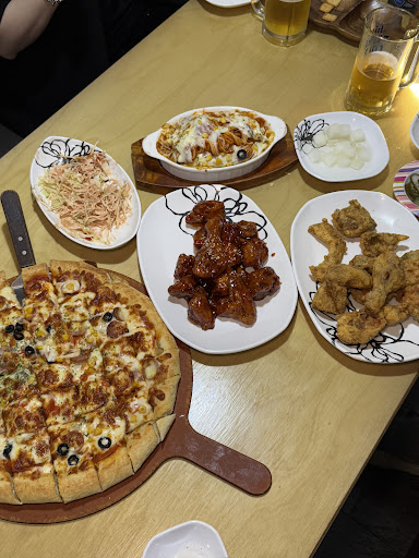 피자, 치킨, 스파게티와 함께 소주를 즐길 수 있음이 행복합니다 모임 하기에 자리도 좋았고 모든 환경이 쾌적해 너무 좋았어요! 여행길 방문하기 충분한 업장이며 매운 양념치킨 진짜 미쳐 따리!