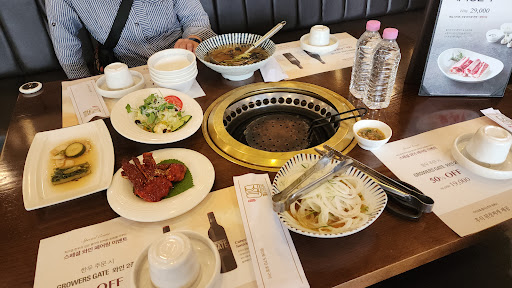 Read more코로나 환경에 최적화된 넓은간격과 발열측정 장비, 서빙 로봇등이 구비되어 있어서 매우 깔끔하고 쾌적한 공간입니다. 일요일 저녁에 방문했고 서빙하는 분들도 매우 친절한편입니다. 1점을 뺀 이유는 숯 재사용(이전 손님 사용 후 재 세팅없이 그대로 사용함)에 대한 부분이 조금 실망스러웠습니다. 물론 고기맛에 크게 영향을 주는 요소는 아니겠지만 코로나환경인거를 감안하면 조금 아쉬운 부분이네요. 한돈갈비 가격대가 높은편이고 갈비와 목살 섞어서 주는 점은 아쉽지만 맛은 매우 만족합니다. 기본찬으로 나오는 육전과 송이버섯전은 매우 맛있는 편이고 리코타치즈샐러드, 나박물김치 잡채 모두 기본이상으로 맛있습니다. 양념게장은 조금 달달한 편이었고 야채의 신선도나 맛 조화 모두 만족합니다. 기본 공간이 쾌적하게 구성되어 있어서 접대자리로 아주 만족스러울것같습니다. 다만 사람이 붐비는 시간에 고기를 못굽는 분끼리가면 서빙하는분들이 제한적이니 고기가 탈확률도 고려해야될것같습니다. 저같은경우는 처음 중간 2번정도 오셨고 오시기전에 알아서 고기 잘라서 계속 뒤집었기...