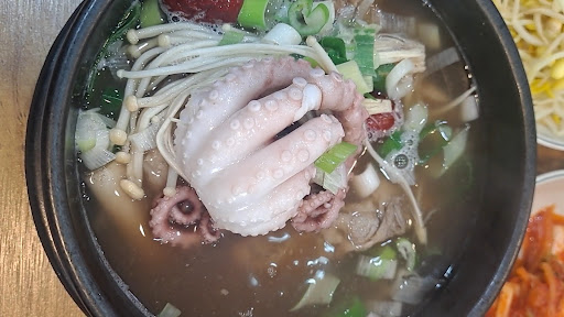 흔히 먹는 갈비탕이 아닌 낙지 갈비탕~ 고기가 부드럽지는 않았지만 낙지는 부드러웠고 육수도 만족스러웠어요. 낙지볶음은 제 메뉴가 아니라 맛만 봤는데 매콤했구요. 기본 반찬이 맛있지는 않은 것이 약간 아쉽네요. 점심시간 약간 지나서 그런지 자리 여유로왔고 직원분도 친절하시더라고요. 미역국 셀프, 아이스크림은 1000원!