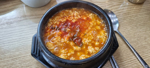 부경대근처 순두부 맛집. 점심시간 조금 전이라 웨이팅 없이 바로 먹을 수 있었지만, 점심시간 때 가면 엄청 붐빌지도. 코로나 감염 예방을 위한 칸막이가 잘 설치되어있습니다. 저는 여기서 흰 순두부찌게를 처음 먹어보았어요. 매운걸 잘 못 먹는 분들께도 추천. 반찬은 뷔페식으로 맛있는 당면, 김치, 샐러드 리필 가능. ㅎ ㅎ 꼭 추천드려요!! A good soft tofu restaurant near Pukyongdae. I could have eaten right away without waiting because it was just before lunch time, but it might be very crowded during lunch time. A partition is well installed to prevent COVID-19. It's my first time eating white soft tofu stew here. Recommended for those who can't eat spicy food. The side dishes are buffet style and you can refill delicious glass noodles, kimchi, and salad. I definitely...