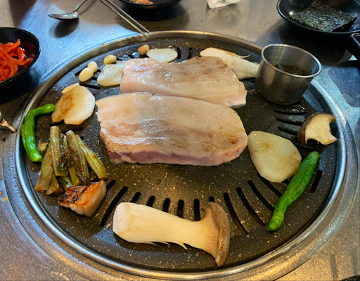 I always wondered why this place was always crowded. On a mundane Tuesday evening, I've seen people waiting to be seated outside of this BBQ restaurant. I finally got to see what the big deal was...and I was very impressed. The meat was delicious and plenty of cuts to choose from. Side dishes were ok, but the pepper cooked on the grill was a surprise. The waiter kept pushing us to try it and I just thought it would have been just a normal pepper. I ended up going up multiple times to the self service bar to get more. The meat was good, but the pepper was...