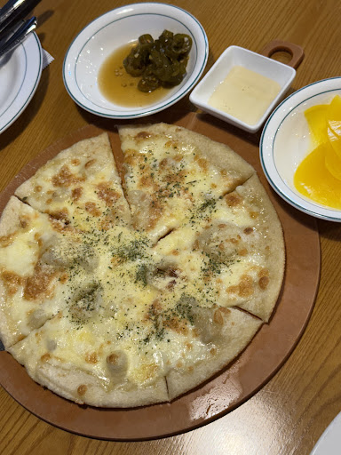 Such a lovely western-style restaurant with a prime location along Songdo beach. The interior was vibey, the menu selection was affordable and tasty, and the service was great! We ordered the gorgonzola pizza, creamy shrimp pasta, and the hamburger steak. The pizza is cheese & dough only, and came with some delicious dips. There were a lot of shrimps and mushrooms in the pasta and had a good sauce to noodle ratio. The hamburger steak was delicious as well. It was relaxing being sat next to the window enjoying the view, breeze, and food. Overall a solid choice if you’re in the mood for more western food!