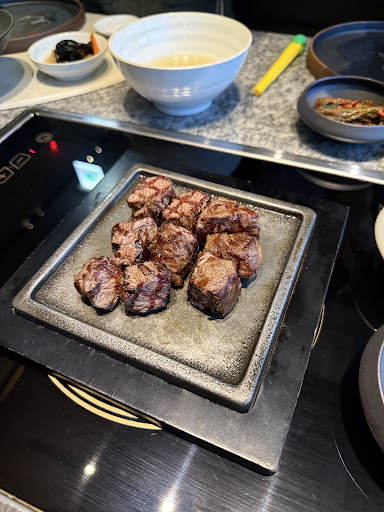 Loved this meal! They have great wine, are super generous with the side dishes, and the meat was amazing. It’s some of the best meat I’ve had in years. The side dishes were so tasty and they had the best japchae I’ve ever had! Delicious meal and a wonderful view of the ocean right outside the window, I would definitely come back next time...