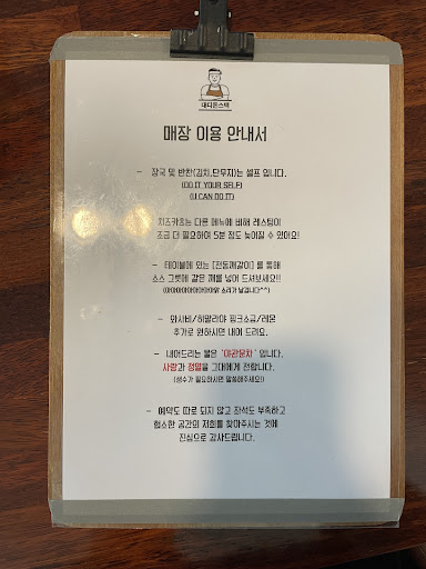 가게가 매우 청결하며 관리가 잘 되고 있다. 키오스크 시스템을 사용하여 주문이 간편하다 전동 깨 그라인더가 있어 흥미롭다.
