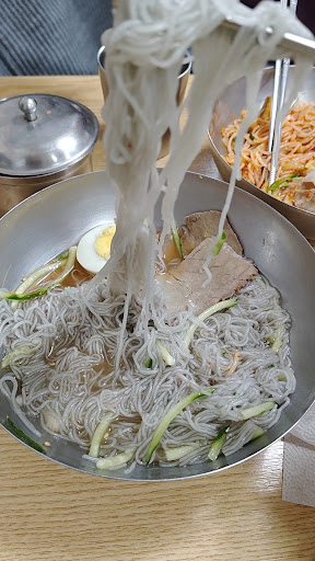 Read moreFirst cold milmyeon in Busan. The owner tried to recreating naengmyeon originate from North Korea. The noodle was so chewy, the cold broth was so refreshing. I ate it in ealry winter but i found it so comforting. They serve small pot of hot broth to warm your self, drink it with glass available on the table.