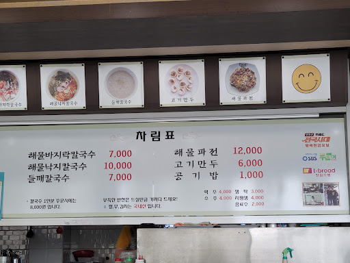 입구에 들어서자마자 뜨거운 열기가 확 다가옵니다. 넓은 공간에 벽걸이 에어컨 1대랑, 작은 용량의 스탠드에어컨 한대, 그리고 여러대의 선풍기가 열심히 돌아가고 있지만 열려진 창문과 출입문으로 들어오는 열기를 막지 못하는거 같다. 창문을 닫는게 더 효율적이지 않을까 생각해본다. 어떤 고객은 앉아서 주문신청을 기다리다 그냥 나가버린다. 해물킬국수가 1인 7천원인데 혼자 방문하면 1천원을 더해서 8천원을 지불해야한다. 혼자 여행을 다니며 식당을 많이 이용해 봤지만 혼자 방문했다고 추가 요금을 받는건 처음 경험해본다. 해물칼국수에는 새우 한마리, 꽃게 반마리, 홍합 세개, 바지락 10개 정도가 전부이다. 7천원짜리 해물칼국수에 조개가 너무 없다. 칼국수를 입에 넣으면서 밀가루 맛이 입에 확 퍼진다. 두시간 걸은 후 늦은 점심이라 그나마 잘먹었다 더운 날씨에...