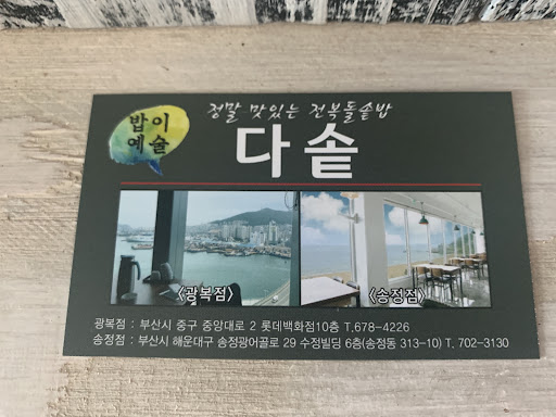 This is my FAVOURITE restaurant in Busan! Having previously visited another restaurant belonging to this restaurant chain, this was our first visit to this Songjeong branch. I just dream of the wagyu beef steak hot stone pot rice meal, and again I was not disappointed. This restaurant presents an impressive selection of side dishes, including whole fried fish and bulgogi beef: many of the side dishes would in themselves make an amazing full meal. There was a stunning beach/ocean view. The price was very reasonable. I would definitely recommend this restaurant to both tourists as...