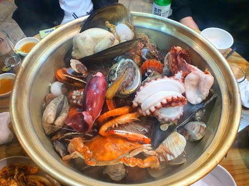 Read more지인의 소개로 들렀습니다 동래전철역 4번 출구에서 먹자골목쪽에 들어가면 입구간판이 있고 골목으로 들어가야 나오는곳 입니다 해물탕 중 자 크기를 주문하니 밑반찬이 나오고 잠시후 음식이 나왔는데 일단 크기가 상당한 탕 그릇에 많은양의 해산물이 가득 담긴 것을 보고 놀랐고 직원들이 오가며 해물탕을 편하게 먹을 수 있도록 정리를 해 주어서 맛있게 음식을 맛 볼 수 있었읍니다 특히 중자 크기의 해물탕을 주문하니 닭을 넣어 준다기에 다른것으로 주문해도 된다 하여 문어를 택했고 탕이 끓었을때 편하게 먹을 수 있도록 해 주어서 맛있게 먹고 남은 육수에 칼국수를 넣어 마무리를 하고 나왔습니다 괞찮은곳 이었고 음식의 신선도, 양, 서비스, 만족스러웠읍니다. 빠른시간에 몇번은 더...