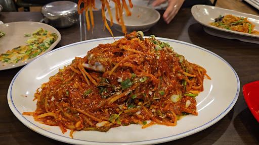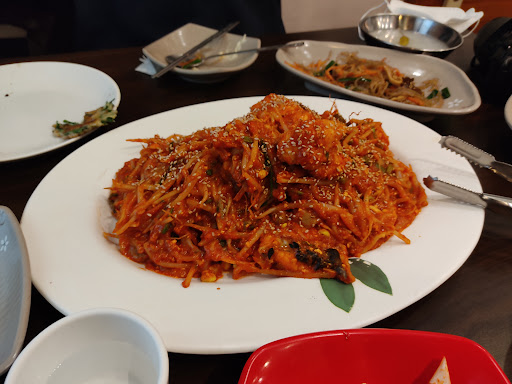 오랜만에 방문했습니다. 금요일 저녁이라 사람이 많네요 처음 2층에서 식사해봤습니다. 신발은 벗고 의자에서 앉아서 먹을수있는곳이에요(1,2층 동일), 단체석도 있네요 전에는 아구찜만 먹었는데 이번에는 대구뽈찜을 먹었고요 조금 매콤하고 재피가루랑 산초향이 강해요 직원분도 처음에 강조해주시고요 기본반찬이 부추전하고 샐러드,겉절이,잡채나오는데 다맛있는데 시저샐러드로 나오는데 제 입맛에는 너무 좋았어요 ㅠㅠㅠ 반찬리필해주실때 새그릇에 담아서 주셔서 청결에도 좋았습니다😄 뼈가 생각보다 많지않아서 처음에 살짝뼈제거 해서 드시면 편할거같아요 2명에서 소짜 먹었는데 엄청 배부르게 먹고 나왔어요 그리고 밥은 가격따로 입니다!! 바로옆에 유료주차장있는데 주차권가져가서 계산때 도장받으면 무료입니다 꼭...