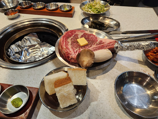 Read more소고기 늑간살을 즐길 수 있는곳이예요- 일반 소고기가 질리고 물릴때 한번쯤 방문해도 좋은곳이예요- 고기질이 좋구요- 생고기로 나오기 때문에 육즙도 좋습니다. 늑간살을 처음 먹어봤지만 부드럽고 엄청 고소했습니다. 저희 부모님도 함께 먹었지만, 부드럽고 고소해서 아주 만족스러워 하셨습니다. 이곳의 특별함은 늑간살도 있지만, 함께 덤으로 나오는 고추장찌개~ 어울림이 좋았어요- 무료로 나오니 더 좋은데요? 그리고 식빵조각이 인원수대로 크게 나와요~ 소고기집에 감바스라뇨~ 이 조합 은근 좋아요 소고기를 먹지만 좀더 고급지게 양식처럼 먹는거 같았습니다. 소고기 뿐만 아니라 삼겹살도 퀄리티 좋아요 소고기와 돼지고기 함께 즐길수 있었네요- 일반적인 소고기집을 찾을땐 아쉬울수 있겠지만, 가끔이런 특수부위를 즐길때 추천드리고싶네요 가격대비도...