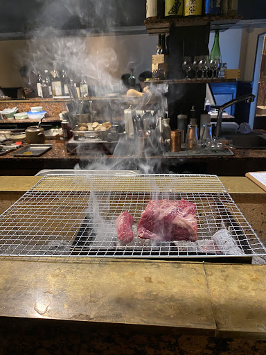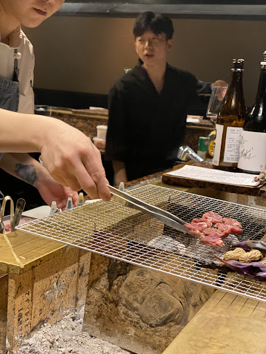 Read more부산친구의 추천으로 알게되고 가게되었습니다. 여기 웨이팅이 꽤 긴걸로 알고 있는데 해운대 출발할때 테이블링 걸고 서면에서 택시내리자마자 바로 들어갈 수 있었어요. 골목 구석에 있어 찾긴 어려웠지만 들어가니 ㄷ자 모양의 바로만 이루어져있고 테이블은 없었습니다. 워낙 좁아 안쪽으로 들락날락할때는 약간 불편했습니다만 꽤 분위기가 좋았어요. 닭 모리아와세 먹으려고 갔는데 솔드아웃되서 시간을 꽤 걸려서 골랐습니다. 살치살 구이를 시켰는데 25000원 이상이 아니라 꼭 채워서 주문을 받더라구요. 배가 많이 고픈 상태라 시키고 굽는동안 더 시킨다고 해도 그 이상되야지 주문된다고 해서 다시 메뉴판을 보고 야채모듬구이와 야끼 오니기리를 시켰습니다. 기본 찬으로 애호박볶음 같은게 나왔어요. 숯을 넣어 불판을 완성하고 살치살을 구워주시는데 소금, 와사비, 홀그레인머스타드을 담은 그릇에 고기를 잘라서 놓아주셨어요. 굽기 등이 괜찮은지 물어보시고 해주셨고 살살 녹았습니다. 구우면서 연기가 꽤 많이 났는데 환기는 잘 되고있는지 모르겠네요. 고기맛이 위스키랑 잘 어울려서 식전에 먹던 에비수생맥주를 남기고 글렌피딕과 탈리스커를 한잔씩 주문해서 먹었어요. 기본적으로 사케가 종류가 많았고 위스키는 아드벡, 발베니, 글렌모렌지 등이 더 있었던 것 같네요. 야채구이는 그냥 그저 그랬고, 야끼 오니기리는 고기와도 잘 어울리고 그냥 먹어도 양념자체가 맛있어서 좋았어요. 고기가 식어서 마지막에는 거의 안 먹었는데 보완점이 있으면 좋을 것 같습니다. 마지막 오더는 12시에 끝났었고, 새벽2시까지 영업을 한다고 합니다. 아키수산 사장님이 같이 하신다고 하는데 메뉴마다 정성을 들여...