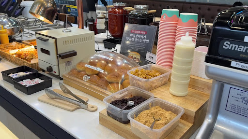 除了烤肉,這裡的自助吧選擇也相當豐富,不僅有熟食、烤麵包,還有海苔飯等各種配菜,可以邊吃邊調整口味,避免純吃烤肉吃到膩。環境相當乾淨,空間明亮,不會有一般燒烤店那種燻到滿身油煙的窘境。