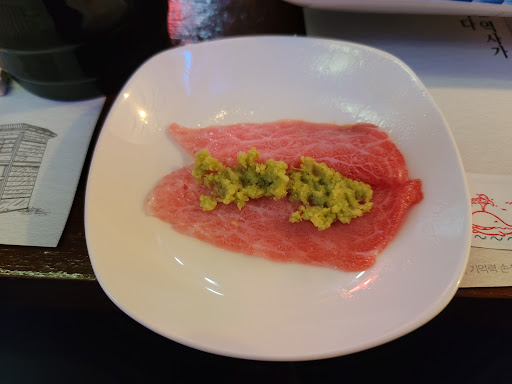 Read more참치도 너무 맛있고 고래고기가 제가 먹어본 것 중 제일 맛있었어요. 쿰쿰한 냄새에서 노랜내가 하나도 안나고 고래고기 특유의 향만 딱 살아 있어서 너무 좋았습니다. 참치랑 고래고기랑 같이 해서 와사비 펴 발라서 먹으니 사장님 말씀따라 천상의 맛이었습니다ㅎㅎ 나중에 좋아하는 사람들 데리고 부산 오면...