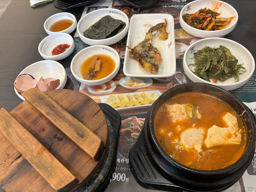 餐點特色: 豆腐鍋: 涓豆腐북창동순두부的豆腐鍋以其大塊、口感扎實的豆腐聞名,豆香味十足,讓人回味無窮。 紫米石鍋拌飯: 這裡的紫米石鍋拌飯是用石鍋烹調而成,保持了米飯的香氣和口感,是豆腐鍋的絕佳搭配。 無限續盤的韓式小菜: 涓豆腐북창동순두부提供多樣的韓式小菜,並且可以無限續盤,讓你的餐桌上總是滿滿的。