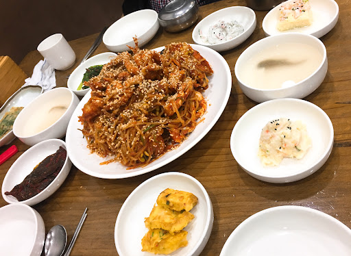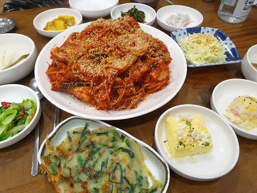 이 동네에서 제일 잘나가는 아귀찜 전문점(이 아닌가 생각함). 1층 건물에 안쪽으로 들어가있어 주차공간이 협소하나 있다는데 의의가 있다. 가격은 비싼편이지만 저렴한 곳보다는 퀄리티가 있는 편이다. 그러나 그에 비해 많이 비싸지 않나 하는... 사람도 많고 종업원도 꽤 갖추고 있다. 주문하면 먼저 양배추 샐러드가 나와서 조리 완성시간까지 시간을 보낼 수 있다. 요리가 반찬들과 같이 나왔는데 반찬들은 미리 만들어놓은 거라 따뜻하지 않다(특히 전). 그러나 비싼만큼 퀄리티가 있는편이라 의외로 괜찮은 것들도 있으며 간이 약하게 되어있는 것들이 많은 편이라 요리와의 궁합이 괜찮다. 찜요리는 위에 땅콩을 뿌려서 나오는데 먹을때는 잘 못느낀다. 양이 많은 편이라고 생각한다만, 가격 생각하면 뭐... 내가 주문한 건 해물아귀찜 중(3인분)인데 내용물은(더 들어있을지 모르겠지만) 낙지 2마리, 꽃게 2마리, 개조개1,새우1, 그리고 아귀. 매운걸 안좋아하는 사람이라 주문할때 안맵게 해달라고 하니까 진짜 안맵게 해줬다. (좋다는 말) 그래서 전체적으로 덜 자극적이어서 괜찮았다.