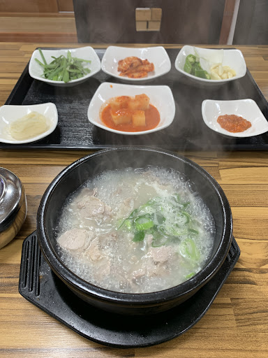 Read more국물도 개운하고 잡내도 없고 근처에서 가장 맛있는 돼지국밥집입니다. 여기 다닌지도 몇년 되엤네요. 코로나가 한창일때 7천원이었는데 지금은 1천원 올려 8천원을 유지하고 있어요. 모든메뉴에서 밥은 별도로 제공합니다. 국수를 주는데 국수도 별미에요. 국수는 더 달라고 하면 더 줍니다. 부추는 양념이 되지 않은 상태로 제공되요. 돼지고기라서 부추와 궁합이 잘 맞아요. 김치와 깍두기는 테이블 마다 있어서 셀프입니다. 개인적으로는 내장과 돼지를 같이 제공하는 섞어를 좋아합니다. 특히 내장이 쫄깃쫄깃 해서...