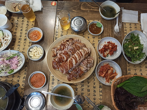 Read moreОчень понравилась еда и заботливое отношение. Не дорого, порции большие. В основе идет свиная рулька и закуски к ней, мясо нежное. Отдельно хочется выделить соус с васаби - крайне хорош, похоже, что готовится по рецепту заведения. Меню только на коррейском, но через фото переводчик, легко разобраться. Есть обычные столы и классические (низкие, где...